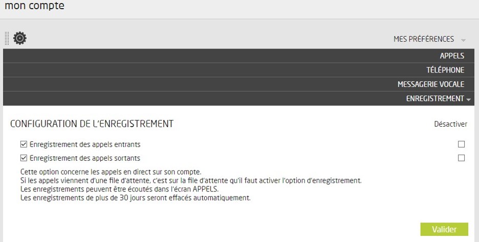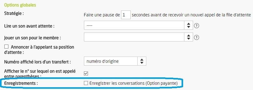 L’option d’enregistrement permet d’enregistrer les appels entrant et/ou sortant d’un compte Livéo ou d’une File d’Attente.