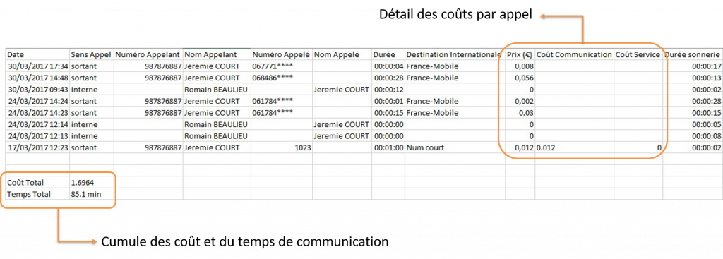 - Cette option peut-être utilisée pour refacturer les coûts de communication à un service interne, Elle peut servir à comprendre une facture adista en affichant le détail des coûts de communication.