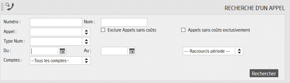 Dans le critère ‘’Comptes’’, pensez à sélectionner ‘’–Tous les comptes — ’’ autrement la recherche s’effectuera seulement pour le compte de l’Administrateur.