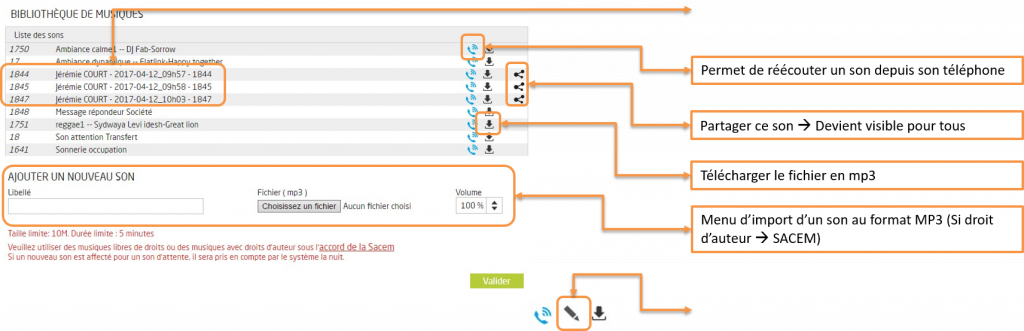 2) Une fois l’appel raccroché, vous retrouverez votre son dans Mon compte à Mes préférences à bibliothèque de musiques
