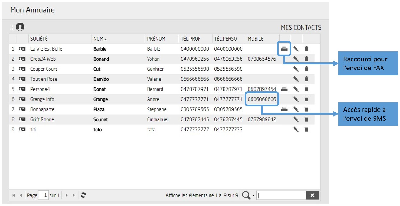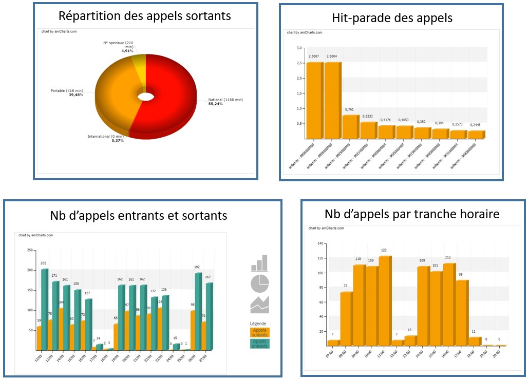 - Le numéro de l’appelant + leur nom si identifié dans l’annuaire (Import Annuaire Excel possible)